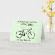 This silly birthday card features the saying, "So I heard you wanted a NEW BIKE for your birthday..." and a silhouette of a bicycle on the front. On the inside it says, "The one on the front of this card will just have to do! Happy Birthday!"
