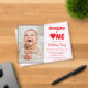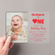 Heart first birthday. Great theme for a February or Valentine's day birthday. Photo template via Pixabay licensed under CC0 and must be replaced with your own photo