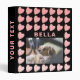 Heart Black and Pink Pattern Pet Dog Photo Album. The binder has a photo of a pet and the pet`s name. The background has a cute pink heart pattern. Personalize the binder with your dog or any other pet photo and your dog or pet name. Change or erase the text on the spine. A great keepsake gift, photo album, and scrapbook album.