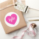 This round sticker is shown with a cute pink heart shape with a sample name, customize this item and change the sample name to yours with this template.