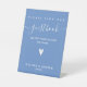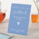 NewParkLane - Sophisticated personalized guestbook signing Pedestal Sign, with 'Guestbook' in elegant whitescript typography /calligraphy with swirls, a cute tiny heart, against a cornflower blue background.