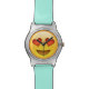 They color and design is exactly what I expected. Decent quality watch however the buckle is plastic that seems a little flimsy. They design is really cute and the colors were true to what showed online. If recommend offering a larger or oversized option since the is the design on the face and it is really quite small. It could be more of a statement pice of it was larger.