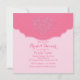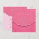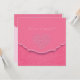 A beautiful invitation in shades of pink with a filigree heart. The mock envelope design has tiny hearts and overlaps an abstract, swirl part tern. (FP)