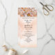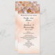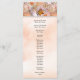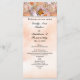 Wedding program on a rack card. Beautiful design with an orange butterfly touching white heart-shaped pearl beads. Another butterfly blends into the bouquet of light orange and pink roses. Orange is the theme colour on the parchment paper image. Convert this for any occasion. Add a photo and/or change the text. Personalize this template with your information.