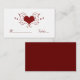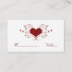 Simple yet elegant Heart Flourish Wedding Place Card design in dark red featuring a big heart decorated with cascades of flourishes and dots flanked by smaller whimsical hearts. This stylish wedding escort card sets the tone for a sophisticated affair. Space is available on this design to write in the names and table numbers where each of your guests will be seated. Click on the "Customize It" button to find additional personalization options.
