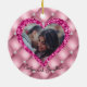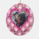 Heart Frame Custom Photo Pink Cushion & Diamonds Ceramic Ornament
