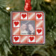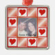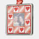 Heart frame Valentine’s Love custom photo ornament. Your photo in a border of red hearts and squares.