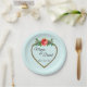 These paper plates have a heart frame accented with a rose and forget-me-not cluster at the top on a subtle light blue background. It’s easy to customize and change the font style, colour and size on the templates I’ve provided. Coordinate with the other items in this colourful retro-style collection. If you like what you see, but don’t see what you want, I can edit my designs to print on the items you need. For your order and shipping issues, please contact Zazzle's Customer Support via https://goo.gl/nCgptf
