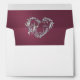 This design features a silver scroll heart on a lavender background on the inside flap, borders on front with heart monogram & glitter on back flap. (Glitter is simulated in artwork - not real glitter). Personalize the return address on front and the heart on inside flap can easily be replaced or removed if prefer. Available with different colours for your wedding theme colours. Designed to coordinate with the "Romantic Scroll Hearts & Glitter Wedding" Collection. To change details, click «Personalize». To move the text or change the text size, font, or colour click «Click to customize further»
