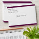 This design features a silver scroll heart on a purple plum background on the inside flap, borders on front with heart monogram & glitter on back flap. (Glitter is simulated in artwork - not real glitter). Personalize the return address on front and the heart on inside flap can easily be replaced or removed if prefer. Available with different colours for your wedding theme colours. Designed to coordinate with the "Romantic Scroll Hearts & Glitter Wedding" Collection. To change details, click «Personalize». To move the text or change the text size, font, or colour click «Click to customize further»