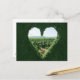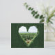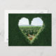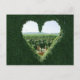Unique Image for this unique postcard, consists of a heart shaped out of grass looking through you can see flamingos shaped out of grass,