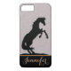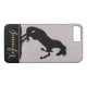 A silvery mauve background with a smoky mist design with the black silhouette of a horse. Personalize with your name. Have more than one case to suit your style or mood for the day! Designed by Robin Cox.