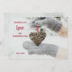 A realist Valentine's Day card featuring a natural, heart-shaped ornament held by hands wearing mittens in the snow. (<a href="https://www.freepik.com/free-photos-vectors/christmas">Christmas photo created by freepic.diller - www.freepik.com</a>). <br/><br/>The card is easy to customize with your wording, font, font colour, paper shape options and choice of six paper types.<br/><br/>Not exactly what you're looking for? All our products can be custom designed to meet your needs at no extra charge.<br/><br/>Simply contact us at askcottonlamb@gmail.com.<br/><br/>Coordinating products available: Just ask us!"