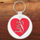 This keychain has "Love 8" or rather "Love Infinity" in a heart. White background.