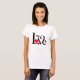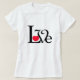 A Love T shirt with a red heart for the letter o in the word. A one of a kind way to share the love. Can be customized to your choice of shirt colour.