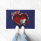This heart-themed doormat features a striking navy blue background, adding a touch of elegance and charm to any entryway. Its design not only enhances the aesthetic appeal of your home but also serves a practical purpose by keeping dirt and debris at bay. Ideal for welcoming guests, this doormat combines functionality with a warm, inviting message.