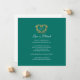 A wedding cancellation card with a decorative old gold heart monogram on white and a rich dark emerald green. Ideal to use as a wedding information card to inform your guests of a wedding or event cancellation, or reschedule due to illness or unforeseen circumstances. Decorative heart wreath design encasing your own monogram initials. In a gold effect reads wedding cancelled love is patient. Other colour options and matching items are available. Original design by Sarah Trett for www.mylittleedenweddings.com