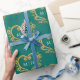 Golden affect heart monogram art on emerald dark green gift wrapping paper. Heart wreath design encasing your own couples monogram initials in gold and white on a dark green or change to your own colour choice. Other colours and matching items are available. © Original leaf drawing and design by Sarah Trett for www.mylittleeden.com on Zazzle.