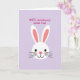 This greeting card features a simple, sweet illustration of a white bunny face centered on a smooth lavender background 🐰. Two long ears stand upright, with soft pink inside that adds a gentle, affectionate touch. The bunny’s round dark eyes and small curved smile give it an inviting look, like it’s gazing at someone it adores. A bright pink, heart-shaped nose sits in the middle, with thin whisker lines and a light rosy blush on the cheeks that suggests shy fondness. In the upper right area, the message “WIFE, somebunny Loves You!” appears in rounded magenta lettering, standing out clearly against the purple. The layout leaves plenty of open space, so the bunny and message feel like a quiet little moment shared between two close hearts 🌷. The ears, nose, and text all repeat the same pink tones, tying the design together. The background stays a single lavender shade, while the bunny’s face remains white with pink accents and dark eyes.
