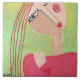 My funky abstract painting of a woman wearing her heart on her sleeve is printed on ceramic tile