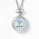 A watch with a whimsical drawing of the Eiffel Tower in the background surrounded by green trees. A pink heart and Paris typography add a girlish flair.