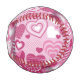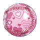 Un baseball rose vif orné de nombreux motifs du coeur dans un cadre gai et lumineux.