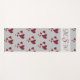 This personalized yoga mat features a pattern of painted bright red hearts. These hearts of various sizes cover both the front and the back of this yoga mat. A light grey banner at the top allows for a solid background for your monogram which appears in black and red, fancy script font. Quickly and easily personalize your mat and get ready for outdoor or indoor exercise.