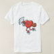 A playful t-shirt design showcasing an adorable smiling heart character playing basketball, holding a ball, and pointing towards a basketball hoop."