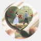 Add a touch of romance to your projects with this heart-shaped puzzle sticker. Featuring a delightful illustration of a couple exchanging flowers, surrounded by red hearts and set against a serene green background, this sticker is perfect for wedding invitations, romantic gift wraps, scrapbooking, or as a sweet personal touch to any item.