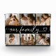 For the family who want a keepsake selection of photos on display. Turn treasured moments into timeless keepsakes with our beautifully designed 6-photo collage block. Whether it’s giggles in the garden, cuddles on the couch, or milestone memories, this frame lets you showcase the heart of your family in a modern, elegant layout. Here's what we love about this design: "Our Family" script with heart detail adds a loving touch to the centre, you can upload six of your favourite photos—perfect for birthdays, anniversaries, or everyday joy. This would make a heartfelt gift for parents, grandparents, or anyone who cherishes connection. This is ideal for mantelpieces, desks, or gallery walls—wherever love lives. Designed to evoke warmth and togetherness, this photo block is more than décor—it’s a daily reminder of what matters most, your family.
