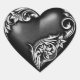 Beautiful heart sticker with silvery white flourish scroll on a black heart, perfect for adorning scrapbook pages or used as an envelope seal.