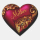 Beautiful heart shaped sticker with gold flourish scroll on a red heart, with customizable text to personalize. Makes a perfect gift for birthdays, anniversaries, or Mom on Mother's Day. Hang on the wall, decorate a gift package, or tie around the neck of a wine bottle.