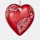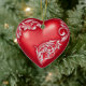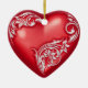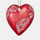 Heart Scroll Red w White Ceramic Ornament