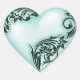 Beautiful heart shaped sticker with silvery white flourish scroll on a aqua / soft blue green sea glass colour, perfect for adorning scrapbook pages or used as an envelope seal for weddings, bridal showers, baby showers, and more.