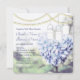 Heart-shaped lavender blue hydrangea bouquet with mason jars hung on string of lights wedding invitation design. Fully Customizable, all the default text can be fully customized with your own wordings, and you can also change the fonts, sizes, & colours of the text. Please click "customize it" button to get all the edit options. These invitations can easily be altered to suit your other celebration/occasion needs by changing the text.