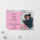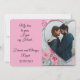 Heart shaped cutout on the right side of the card is surrounded with pink roses. You personalize the card by uploading one of your favourite photos using the template provided. Text is fully customizable. Reverse side of card is a pattern of roses.