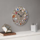 Create your own multi photo clock. The photo template is set up for you to add 12 photos which are displayed in a heart shaped frame. The design uses portrait vertical photos for all numbers except 3 and 9 which are in landscape horizontal format. The clock face has simple numbers with a rustic medium brown wood effect background.