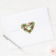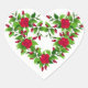 Heart shape sticker shown with a graphic print of pretty red roses.