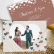 Match the heart colours to your beautiful photo in this romantic hearts themed wedding invitation. Your heart themed wedding invitations will be beautiful with colours that perfectly match the colours in your photo. Beige paper background with a handmade look is complimentary to a variety of teal green, copper, & terracotta wedding colours, although this can be customized to the colours you choose.