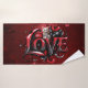 Heart Whispers: The Magic of Love and a Little Kitten.. Stylized word LOVE rises majestically in bold, red font, framed by mysterious black outlines and ornate flourishes that dance around the letters like delicate tendrils. The background is a deep red, reminiscent of the embers of a blazing fire - warm and inviting