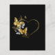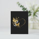 Gold heart shaped frame, decorated with gold, jewellery and white butterflies on black background.