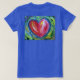 Make a custom heart image painting art shirt with your message and/or pictures. Heart shirts make a special customized love heart gifts! Make a best friends shirts, Valentine's Day shirt, or wedding anniversary shirt. Painting of a red heart with glimmers of white and gold. The heart is outlined in blue against a green background. This image is meant to portray holding onto hope within your heart. Painting was rendered in acrylic.