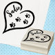 Heart with Paw Print Trail and Custom Name Rubber Stamp