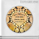 A Save the Date magnet featuring a heart shaped wood trunk with tree rings.