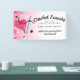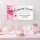 A yarn heart with crochet hook and faux sparkles on this craft show booth display banner for a wall or table, personalized with your text, fonts, and colour scheme.