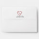 Complete your wedding stationery with white 5x7 envelopes featuring the signature hearts and blooms design on the interior liner. The outside of the envelope can be personalized with a matching heart outline containing the couple's initials, along with the return address elegantly printed below. The vibrant red and floral details inside add an extra touch of sophistication and surprise when the envelope is opened, perfectly complementing the rest of the collection.