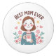 A cute and heartwarming illustration of a smiling mom holding a coffee mug, with "Best Mom Ever" written in playful hand-drawn lettering above her. Surrounded by soft pink hearts, flowers, and sunshine.