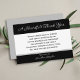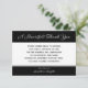 When we are say thank you for. your sympathy, it comes from the heart. This design features the words, "A Heartfelt Thank You" in silver on a black background. The thank you for your sympathy greeting appears right below on a white background. On the bottom on a black and silver edged background is the name of your loved one. This is a lovely way to say thank you for your sympathy. copyright sympathythankyou