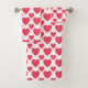 Heartwarming Design: The towel set features an enchanting pattern of vibrant red hearts, exuding a sense of love and warmth. The playful design is perfect for adding a touch of cheerfulness and romance to your bathroom decor.