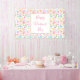 Happy Valentine's Day party banner with a delicious and whimsical pattern. Hearts, love letters, muffins, tulips and cherries bring joy and happiness to this cute little pattern. Pretty pastel colours. A white square with a faux gold foil border layered over top with your text inside.
